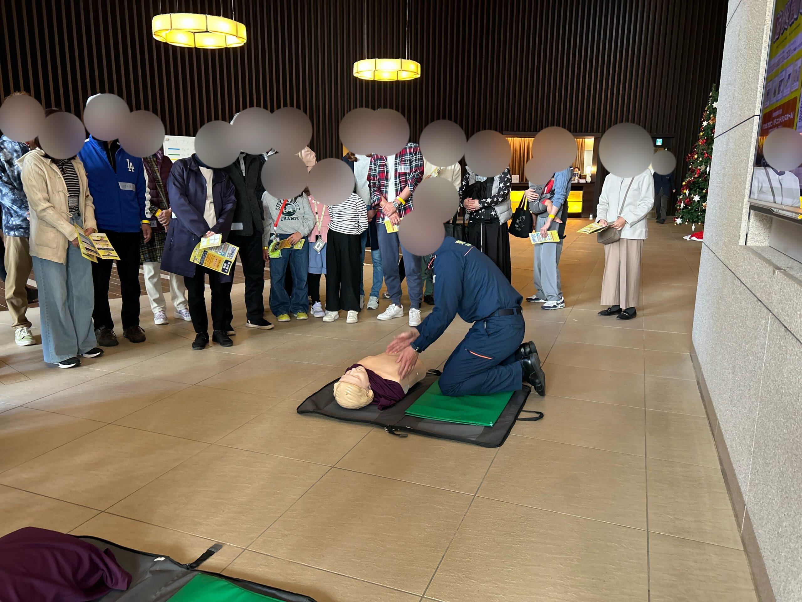 はじめは消防署の方に説明をしていただき、その後一連の流れを実践形式で確認しました。