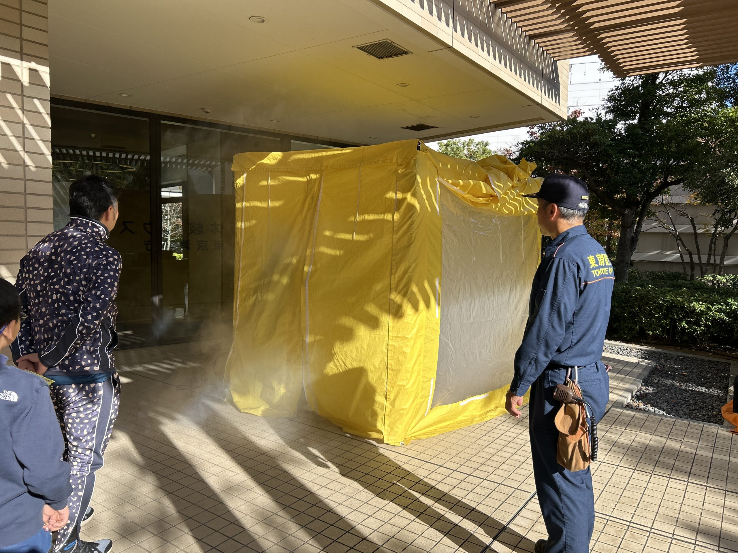管理組合や東京消防庁 深川消防署の皆様のご協力により、いよいよ防災訓練がスタート。