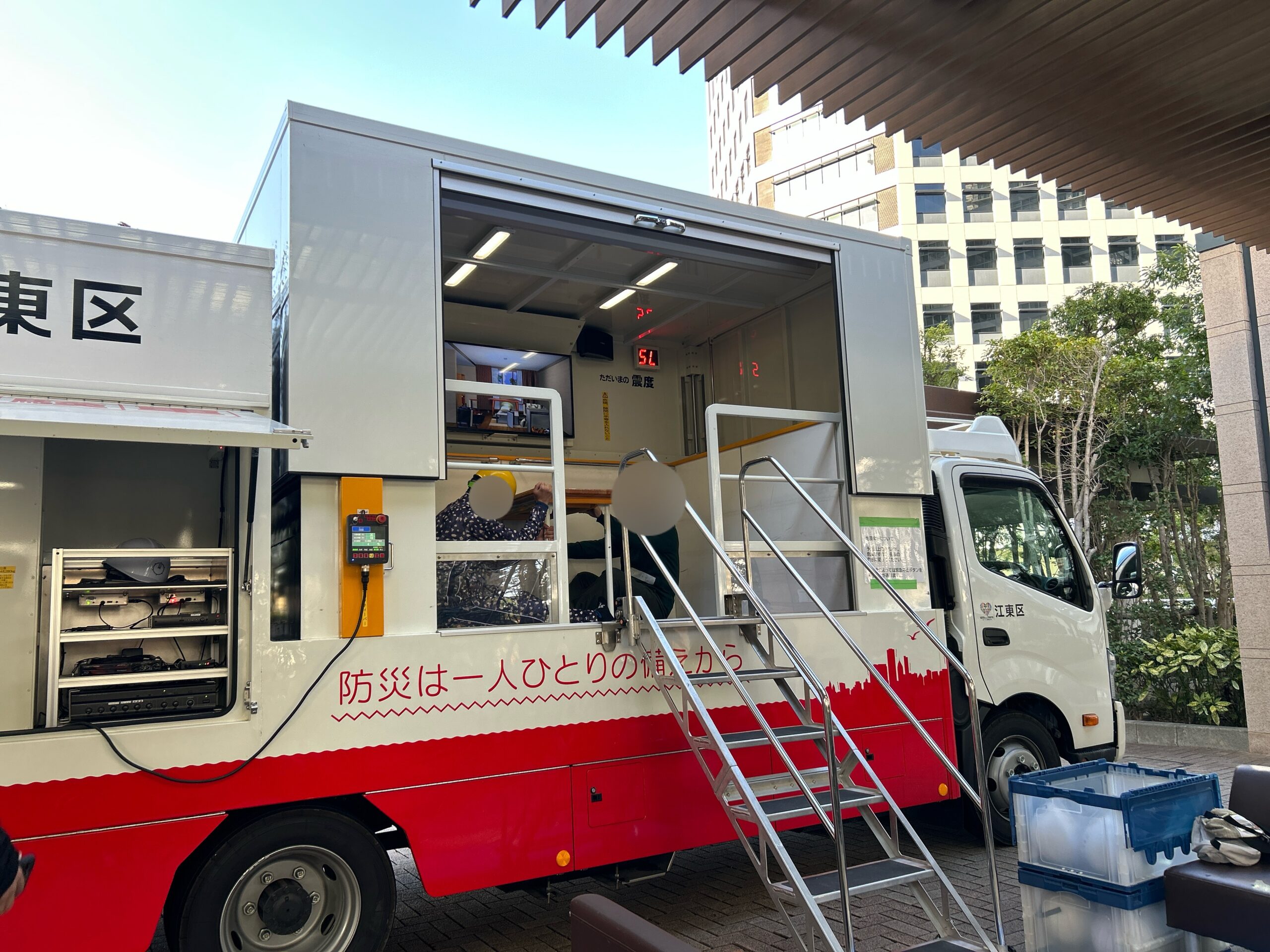 続いて伺ったのが起震車のブース。最大震度6強までを体験することができる車です。