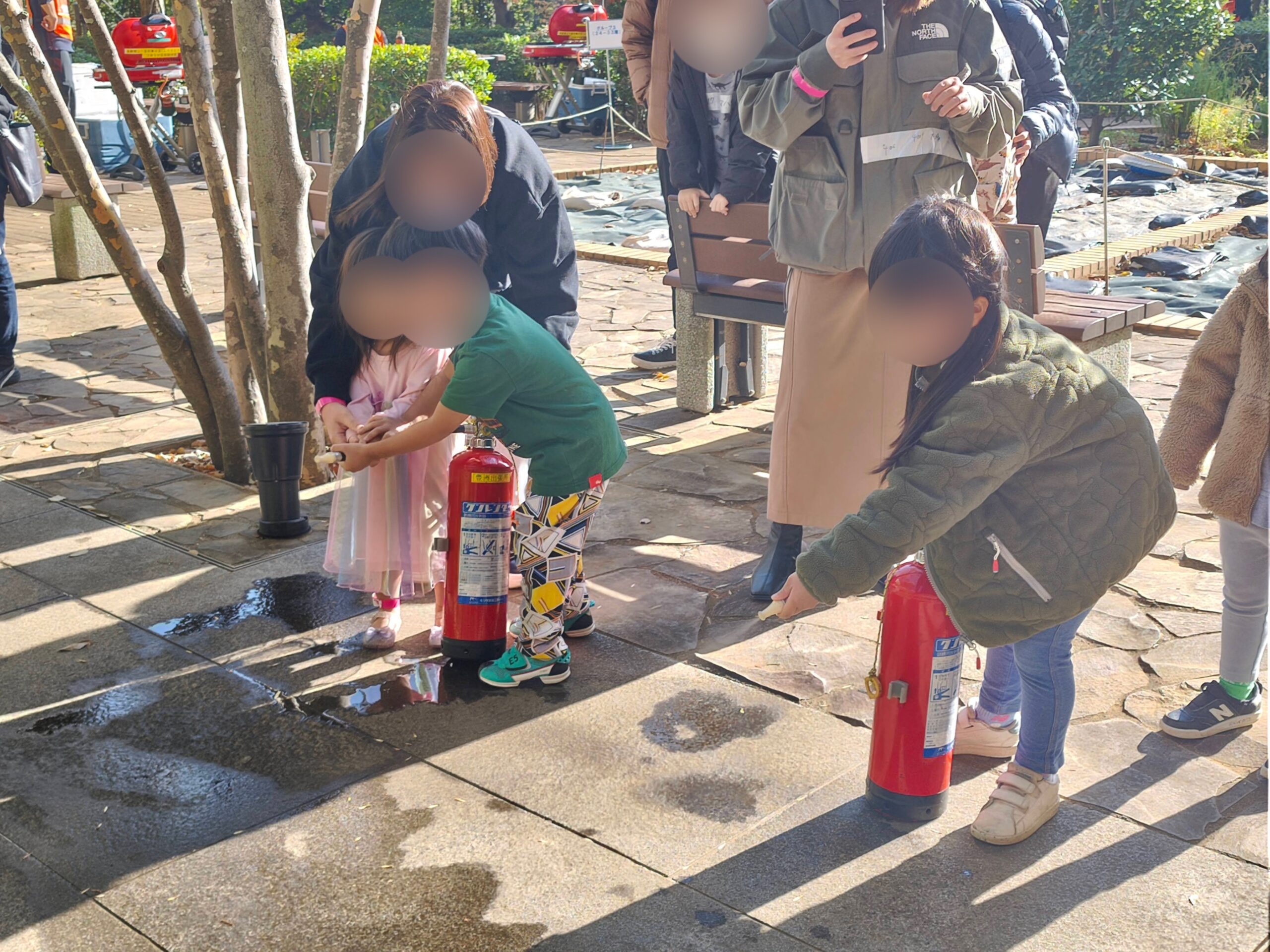 「普段から目にするけど、使ったことはない!」という消火器。お子さんの表情からは興奮と緊張感が伝わってきました。