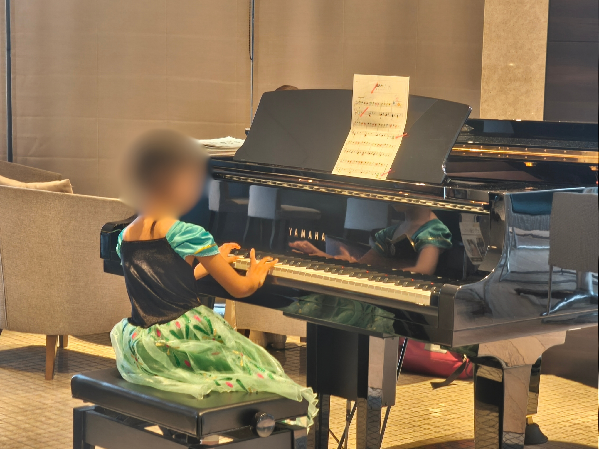 ドレスをまとってグランドピアノを弾く姿はその場にいた人々を魅了しました